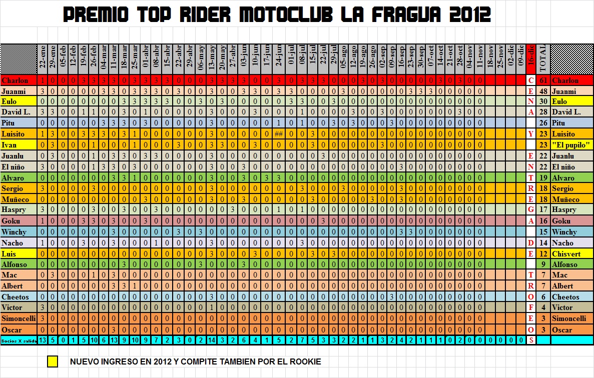 | Top Rider 2012 y Rookie 2012 del Motoclub La Fragua. |